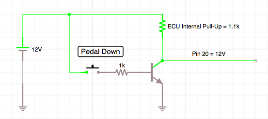 The TDI ECU needs three connections for these two pedals. Without them you will have no cruise or worse— a flashing glow plug light and a code. These are a little confusing to think about because you have to reorient your brain to the idea of "unpushing" a button— when you push the pedal, the switch returns to its normal position.