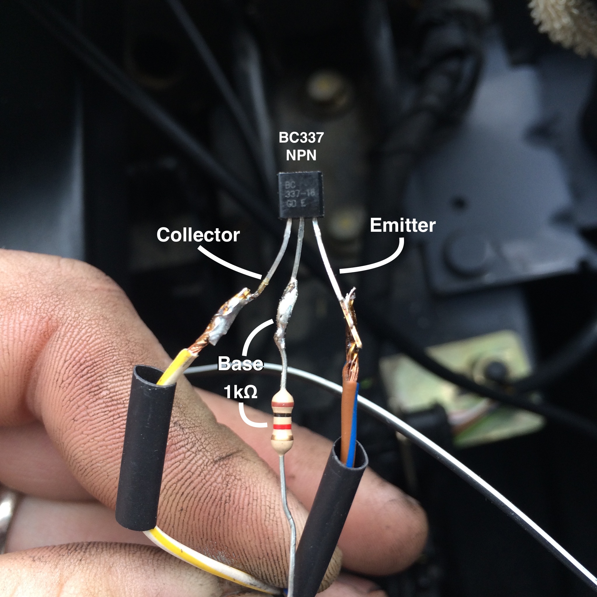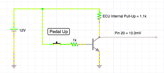 Unfortunately, the ECU has an internal pull-up resistor for F47 which I was unwilling to find and desolder. The switches just don't close at the same time and I was unable to adjust the old vacuum switch position. Instead, I defeated the careful German design (seriously, read the Funktionsbeschreibung on this system alone) by making a simple transistor circuit, shown below.