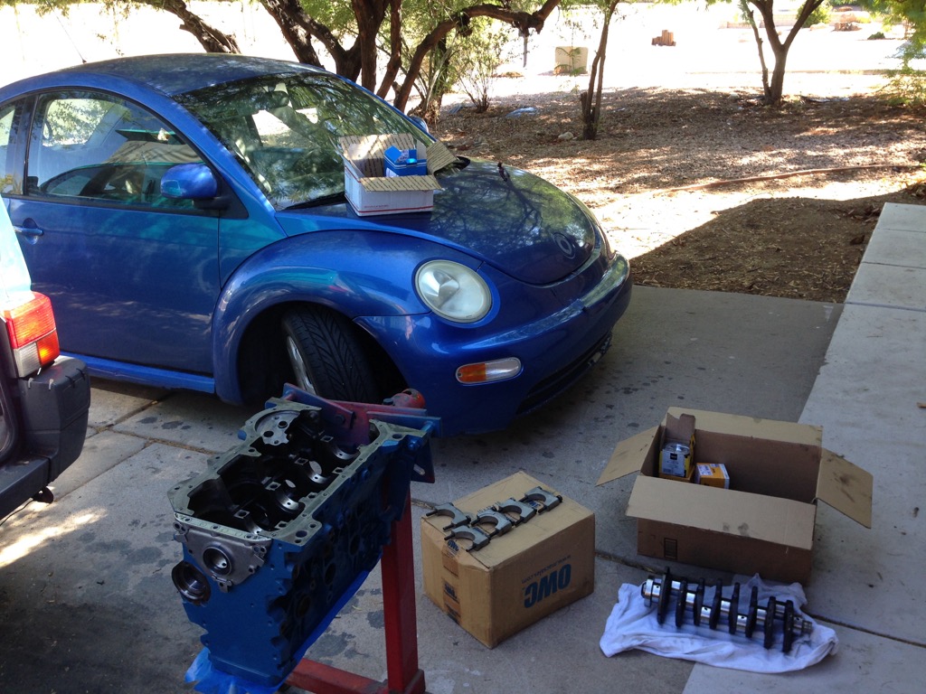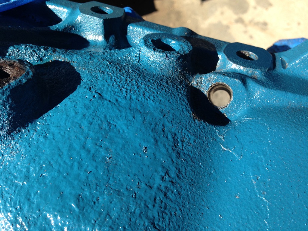In the T4 the block is leaned quite a bit further forward than it was originally in the Passat. Because of this, the oil pan and sump have to be replaced and the dipstick comes in the back of the block rather than the front. There is a small flat area cast into the block that needs to be drilled out to accommodate this. The hole is 10mm through the block, and then a 14mm wide hole 9mm deep for the tube to rest in.