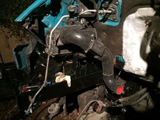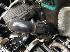 It's also worth mentioning that the hose closest to the turbo inlet is fairly tight between the engine mount and the firewall soundproofing. Because there's relatively soft steel inside at this point, I stepped on it to oval it out a bit. This ends up creating a sort of pancake pipe that has pretty decent clearance. Overall I'm pretty pleased.
