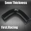 The 2.75" bend runs from the airbox to the MAF, then the 45° runs over the engine mount to a very short piece of 2" OD exhaust tubing. Connected to that is the final 90° bend into the turbo. Be cautious using normal hose clamps on silicone piping— it has a low shear resistance and may be damaged by the holes for the teeth in the band.